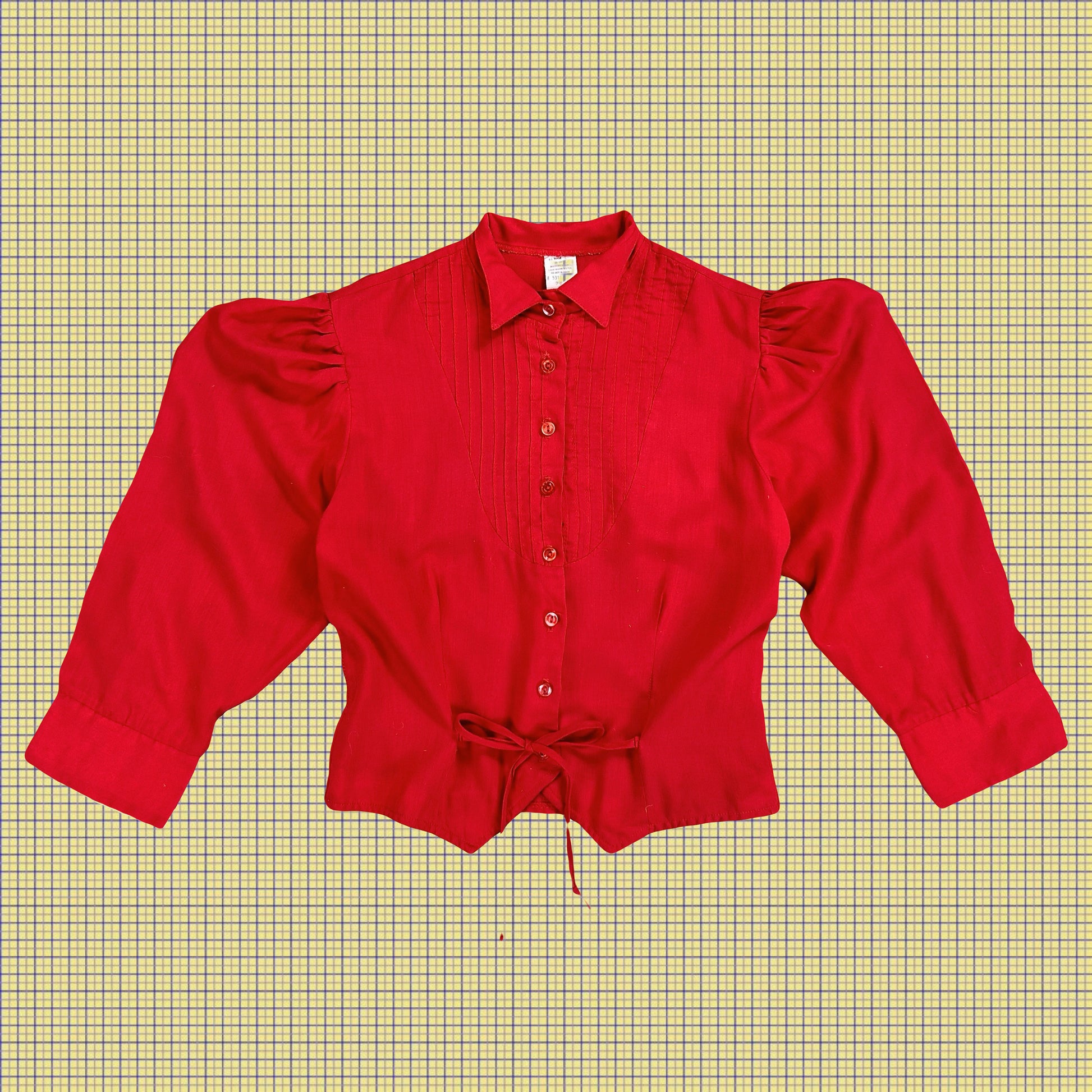 Vintage 1970's fire truck red cherry lipstick candy apple puff sleeve button blouse