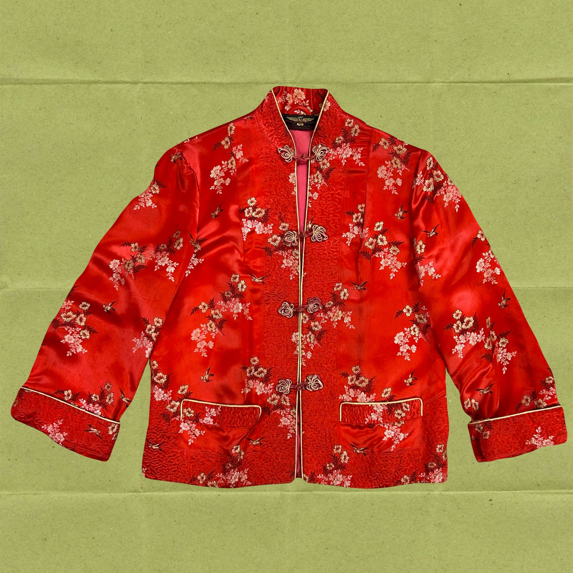 1960's/ 1970's silky satin red oriental brocade jacket